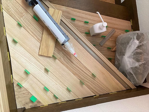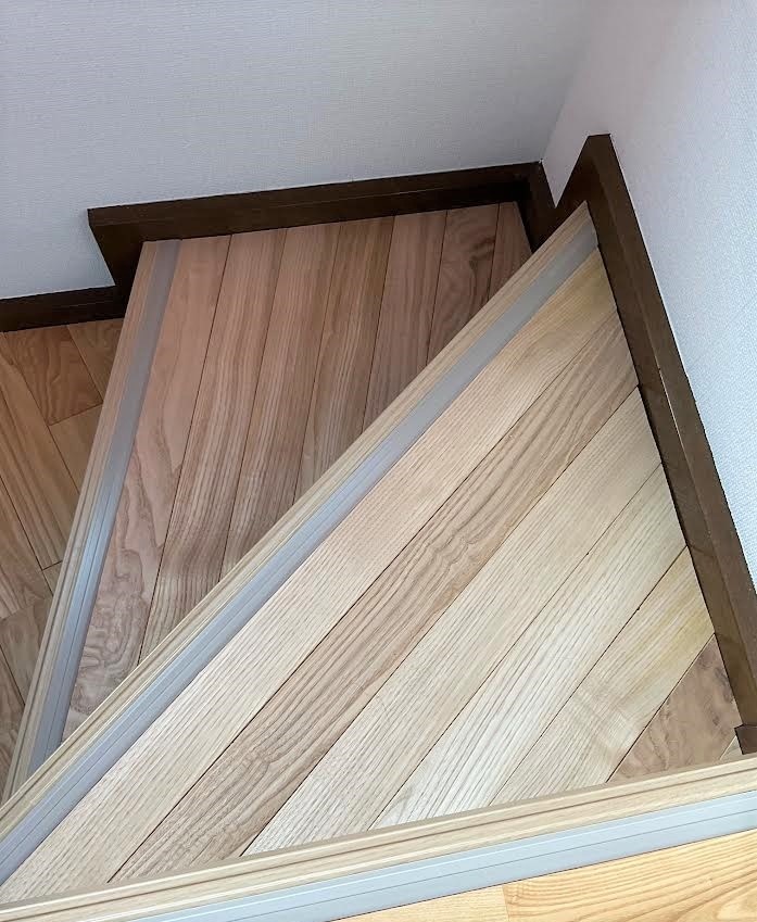 【階段踊り場の床をリフォームしています。栗材で3㎡分の見積り】
