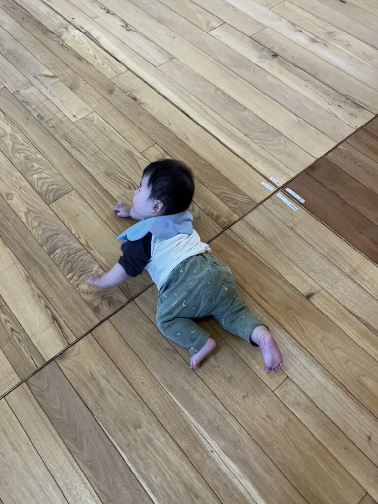 また一緒にいらしたお子様も全身で広葉樹フローリングを体感しており