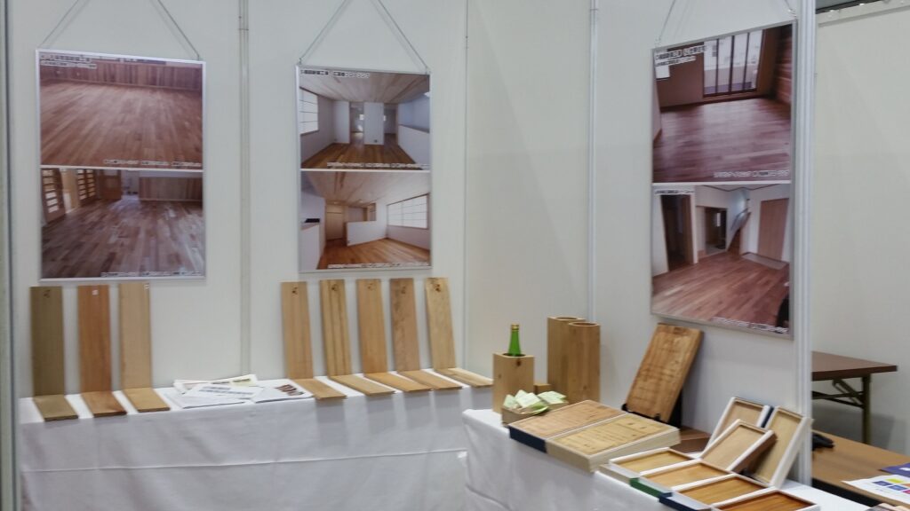 アイタ工業からは、各種国産無垢のフローリングを展示させていただきました。多数のお客様にご来場いただき、国産無垢材に直接触れて頂くことができ、素材の良さをお伝えすることができました。