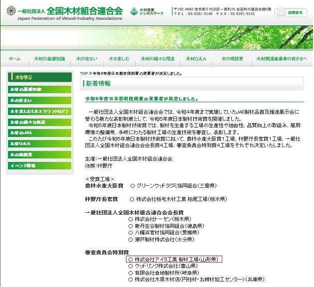 こちらの賞では製材を生産する工場の生産性や独自性、
