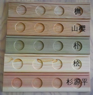 橅・山櫻・朴・桧・杉源平の5種類を作成しました。