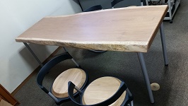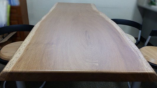 テーブルは米沢産のナラの一枚板を使用し、表面にアクリル塗装しました。