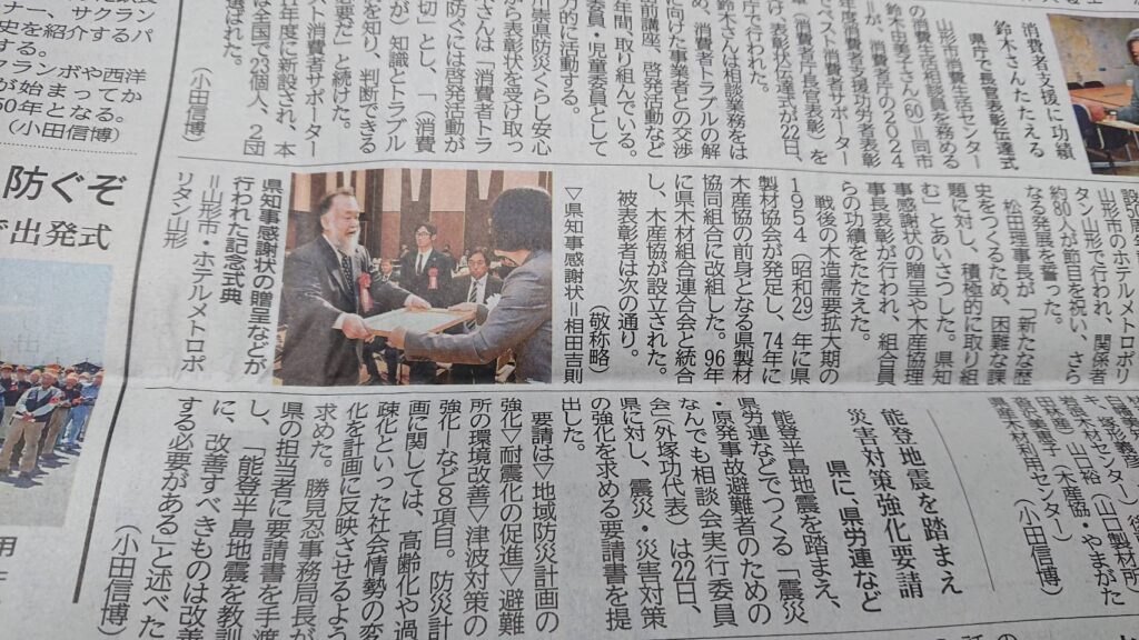 先日、山形県木材産業協同組合の創設50周年記念式典が行われ、