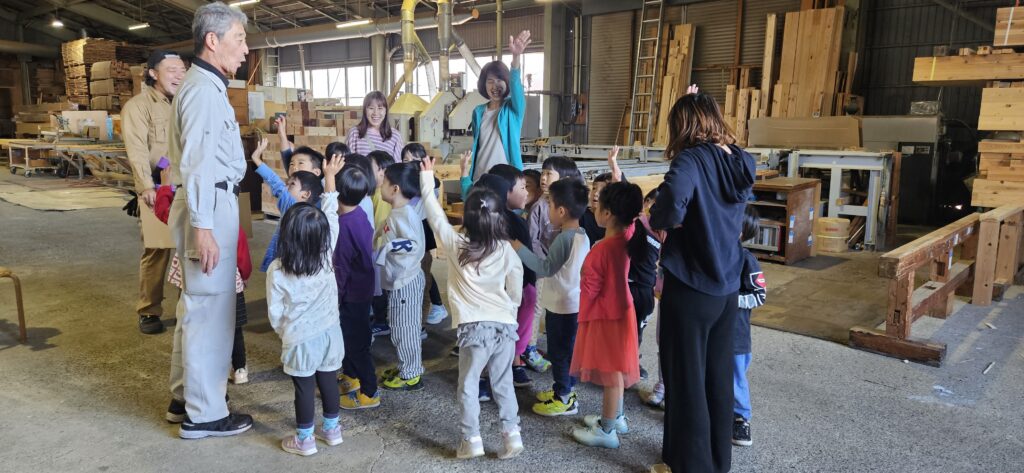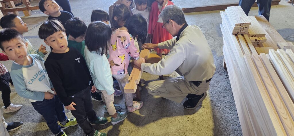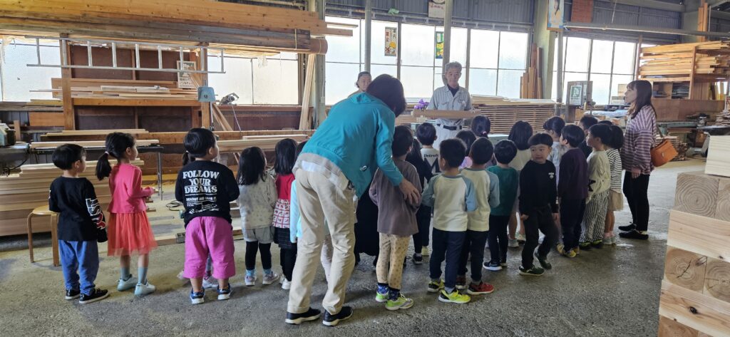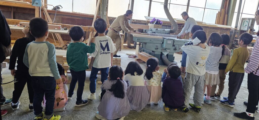 普段、園で遊んでいる組木のおもちゃがどのようにしてできるのか、