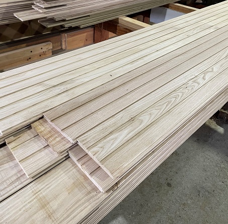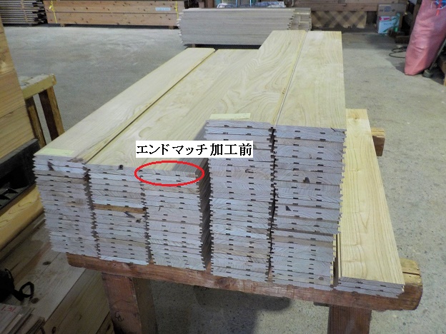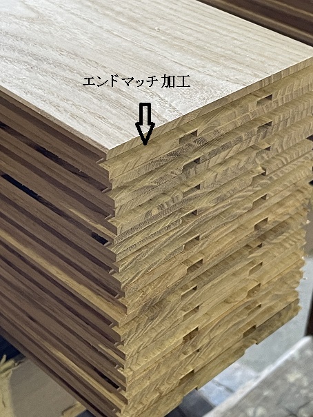 短手方向の側面に隣の板と噛み合うように凸凹の加工を施します。