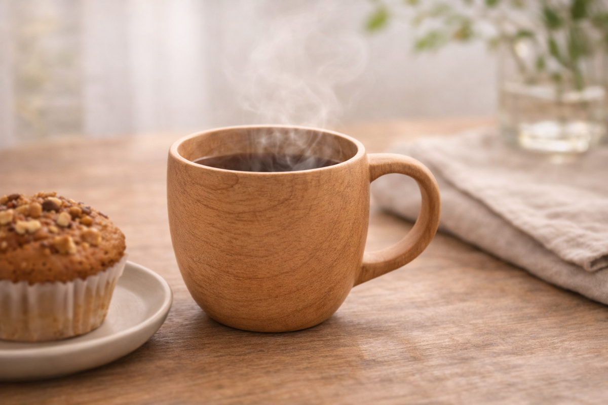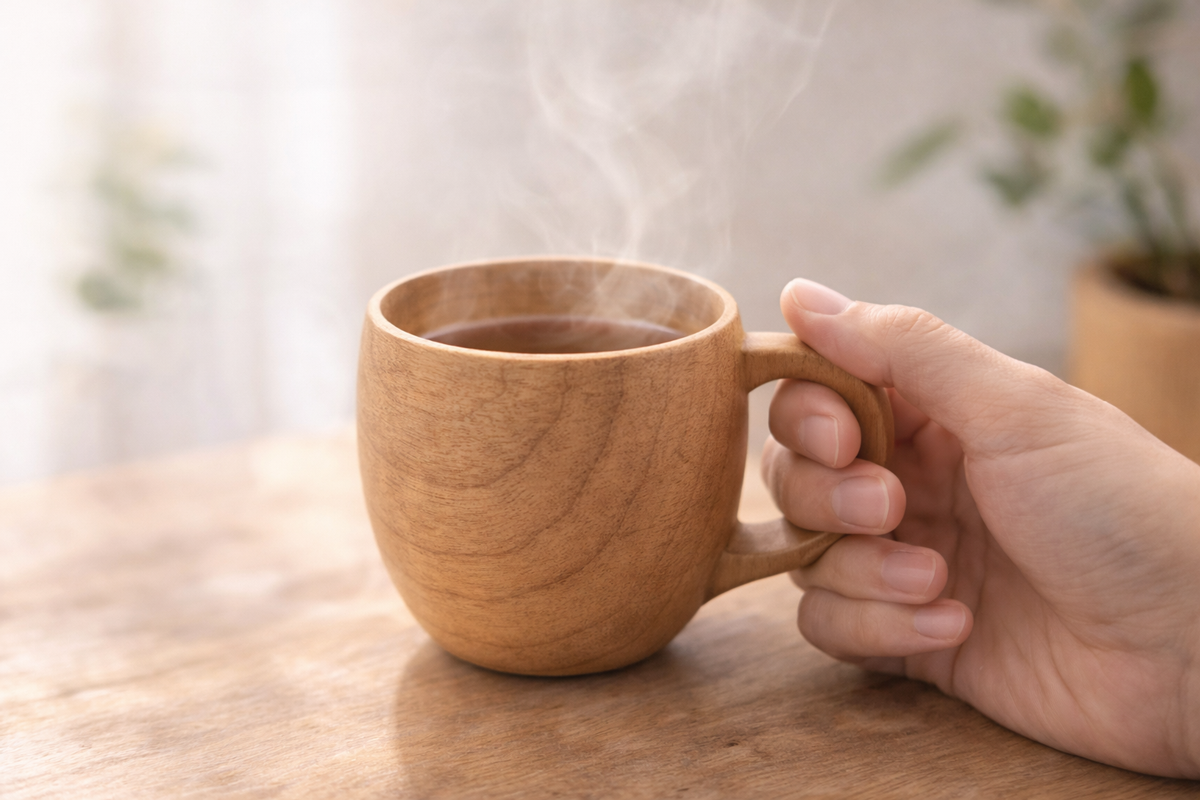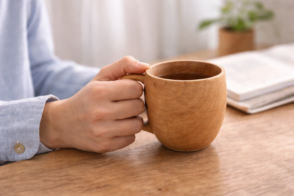 木のマグカップは、使った瞬間の感覚が大きな魅力です。