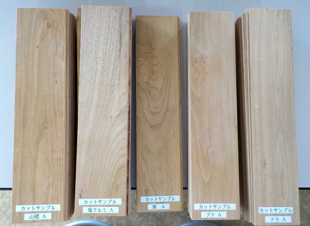 樹種により板の厚さを変えて挽いていき、最低の厚さは20m/m以上にします。