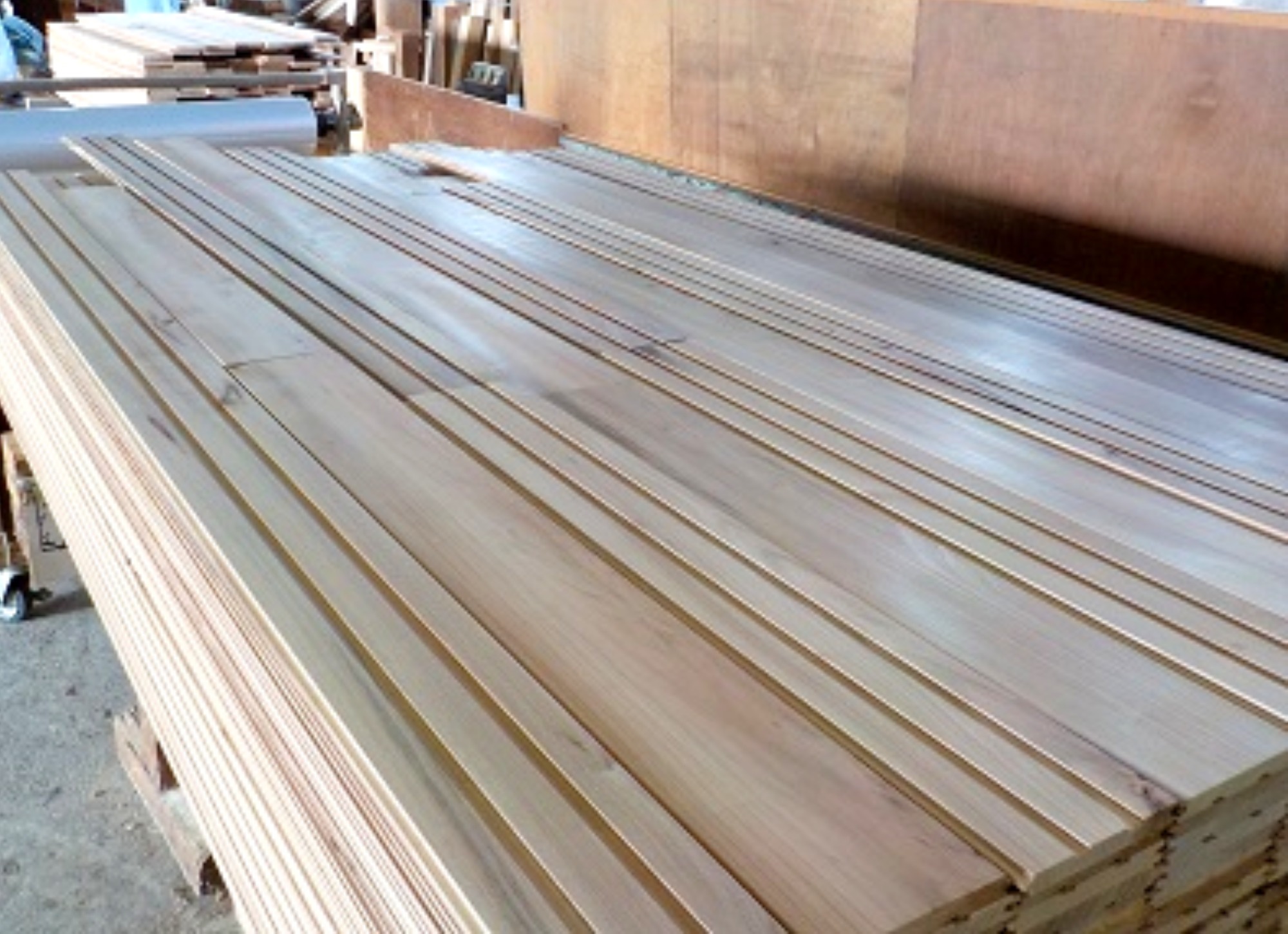 加工材を自動送りして、一度に多軸加工を行うもので真直度・幅(働き巾)・厚さを決めるモルダー加工をします。