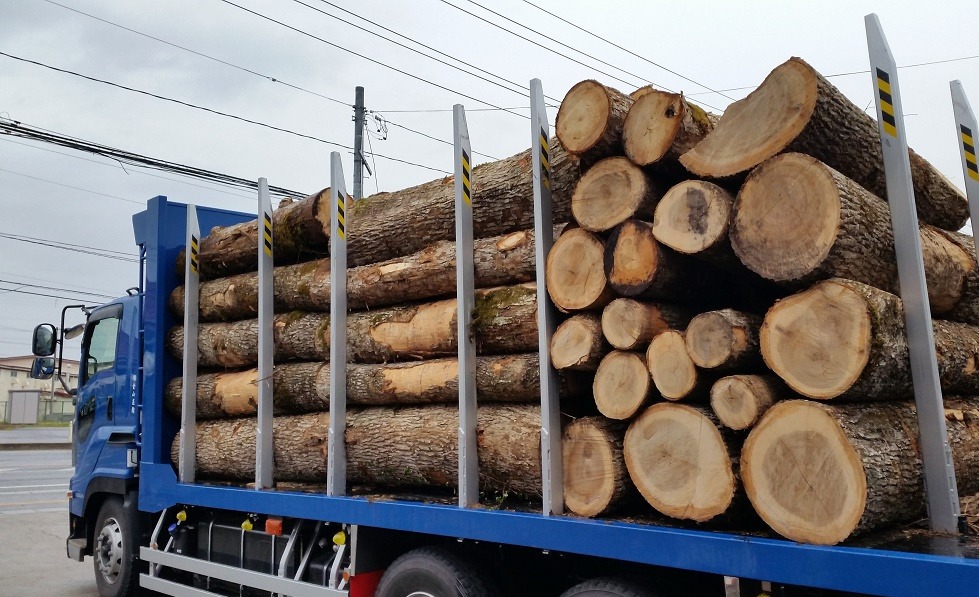 運搬は産地ごと・樹種別に伐採後できるだけ早く山形県米沢市にある自社土場(貯木場)に着けてもらいます。
